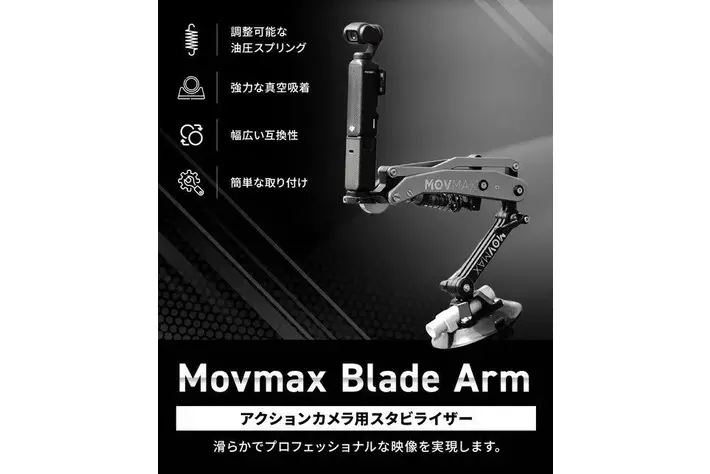 走行中でも、ブレない滑らか映像を撮影可能に。アクションカメラ用車載スタビライザー「Movmax Blade Arm」取り扱い開始