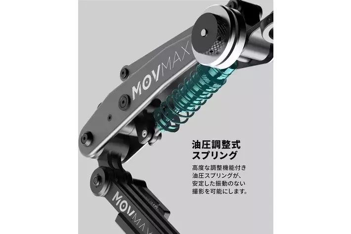 内蔵の油圧式スプリングを用いたショックアブソーバー機構により、走行中や激しい動きの中でも振動を大幅に軽減し、映像のブレを抑えます。荒れた地形でのスポーツ撮影から車載動画まで、幅広いシーンでお使いいただけます。