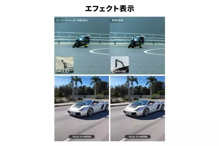 これまでにも多くの撮影アクセサリーを取り扱ってまいりましたが、今回の「Movmax Blade Arm」はその中でも特に革新的な製品です。実際に使ってみると、車載やスポーツシーンなどの激しい動きの中でも、驚くほど映像が安定します。