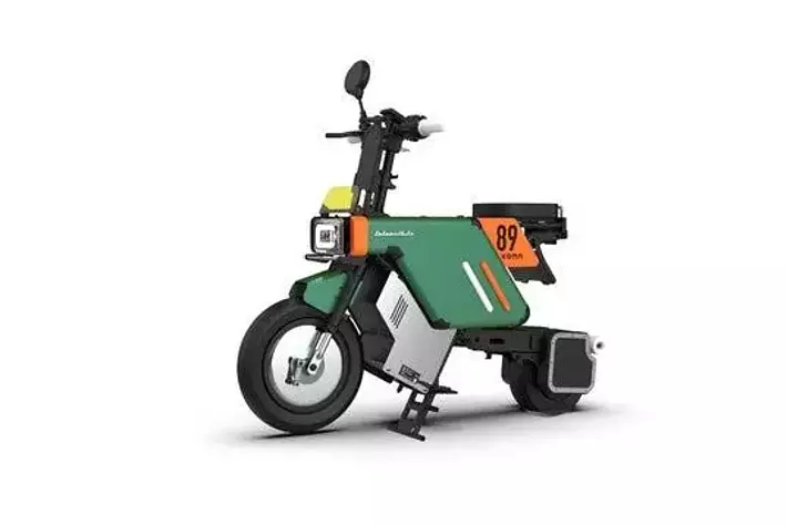 変形するおもちゃから着想を得た折りたたみ電動バイクです。スーツケースのサイズから、フロント10インチ、サスペンション完備の安心して乗車できる小型バイクに変形します。