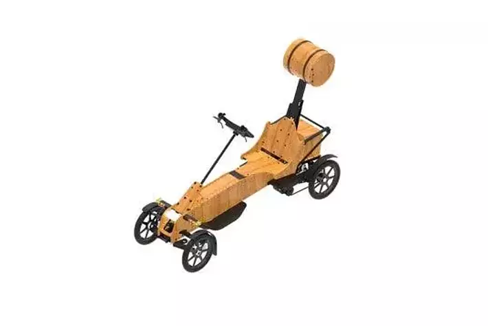 ICOMAチーフエンジニアの水嶋徹が設計した木製カートです。木製カート初の特定小型原動機付自転車区分のため、16歳以上であれば自動車免許がなくても運転でき、最高20km/hでの走行が可能です。