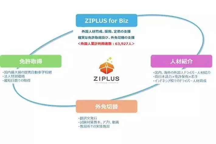 こうした流れに対応すべく、当社では法人向けに、外国人ドライバーの免許取得・免許切替・人材紹介を一貫して支援するサービス「ZIPLUS for Biz(ジップラス・フォー・ビズ)」を開始いたしました。