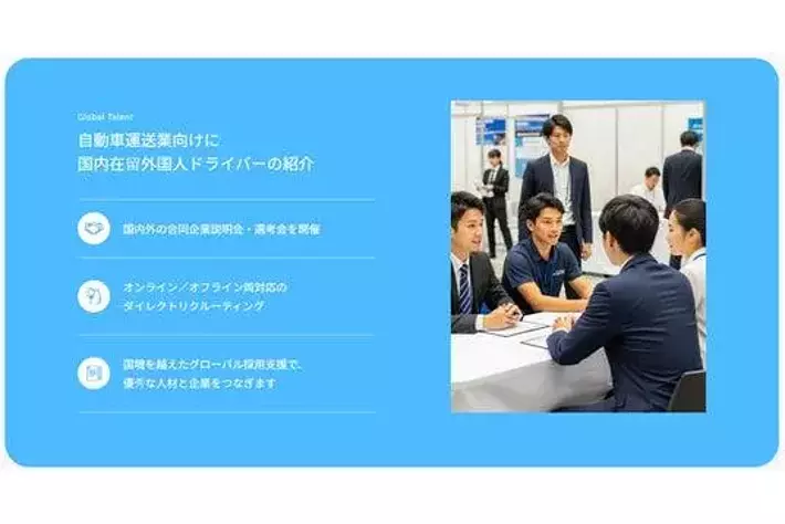 本サイトでは、企業の免許取得支援・外国免許切替支援・人材紹介・海外人材育成事業を通じて、「運転免許取得支援 × 人材採用支援」により企業の課題解決を総合的にサポートします。