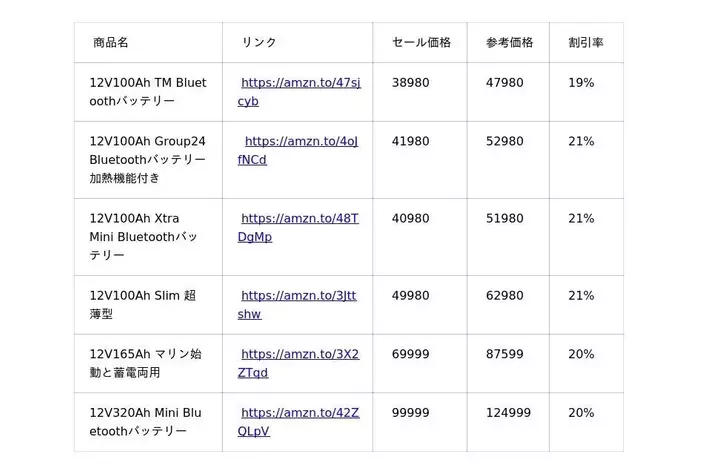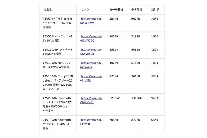 ●バッテリーと充電器、インバーターなどの関連製品をまとめ買いでさらに5~10%割引