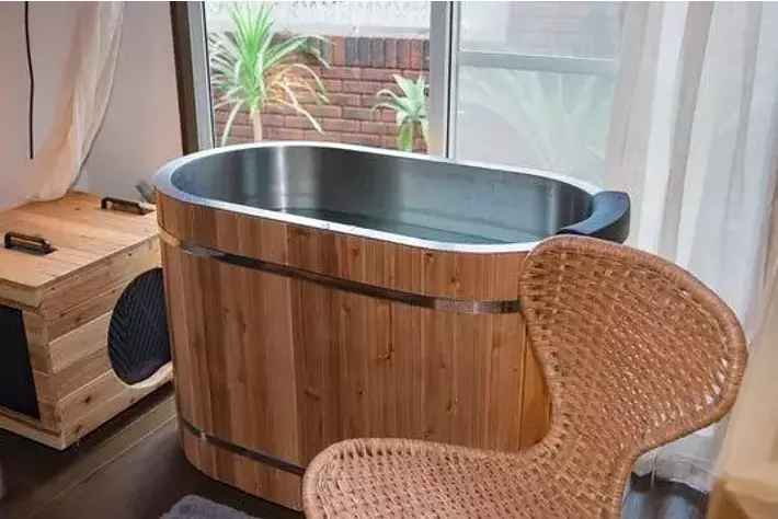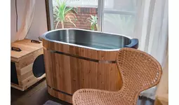 コンパクトなボディの本格派水風呂「Hagoromo1s」=横浜市・山手のkokolo sauna(R)ショールームで