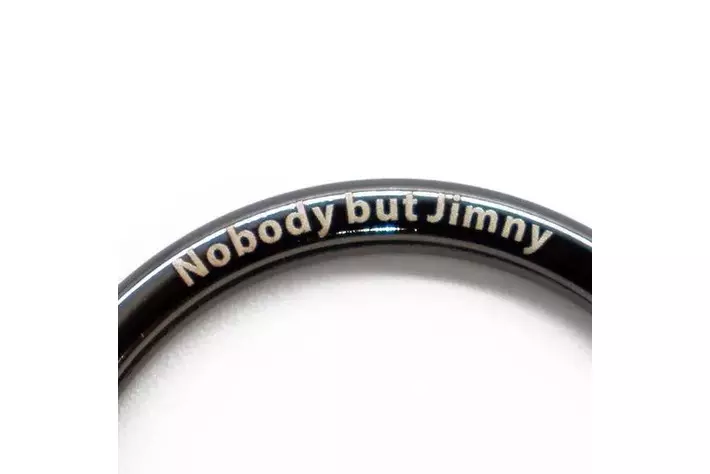 小さなシャベルのチャームや「JIMNY」の刻印入りのプレートがきらめきます。