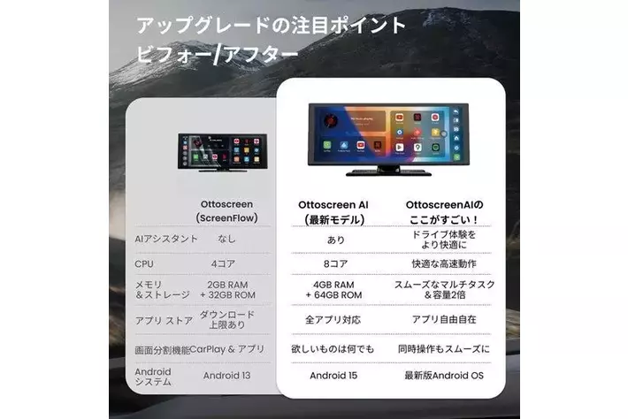 車載エンタメの“革命児”!「OTTOCAST ScreenAI」発売開始Android 15搭載 × ワイヤレスCarPlay/Android Auto。置くだけで使える新世代ディスプレイ