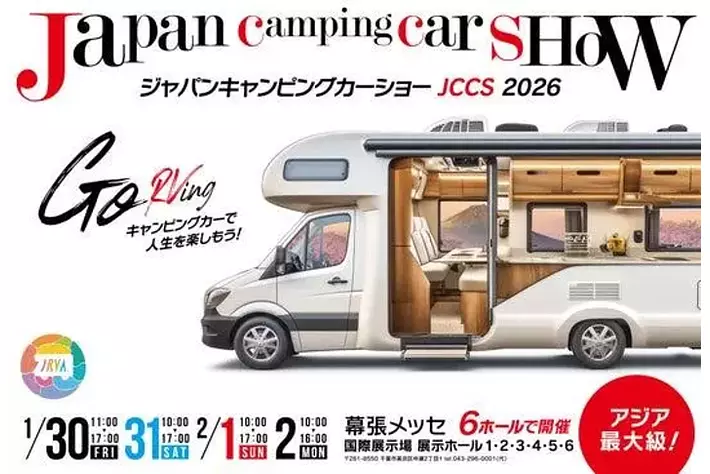 ジャパンキャンピングカーショー実行委員会(事務局:一般社団法人 日本RV協会、株式会社ブシロードムーブ、株式会社ネオプロジェクト)は、2026年1月30日(金)~2月2日(月)の4日間、幕張メッセ(展示ホール1~6)にて、アジア最大級のキャンピングカーイベント「ジャパンキャンピングカーショー2026」を開催いたします。