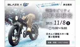 株式会社ブレイズ(本社:愛知県名古屋市、代表取締役:市川秀幸、以下「ブレイズ」)は、2025年11月8日(土)、山梨県笛吹市のカムイ御坂スキー場にて、同社の新商品「STYLE e-BIKE(スタイル e-バイク)」および「SMART EV 特定原付モデル(スマートEV 特定原付モデル)」が試乗できる電動モビリティ体験イベントが開催されることをお知らせいたします。