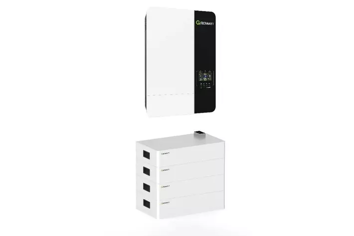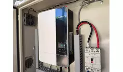 パラオ・ペリリュー州 政府庁舎の格納庫内に設置されたGrowatt「AXE 5.0L Modular Battery」(パネル容量:5.9kW)ハイブリッド3kW PCS×2台/蓄電ユニット5kWh×2台