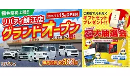 株式会社リバティ(代表取締役:蓮尾耕司、本社:京都市伏見区、以下「リバティ」)は、福井県鯖江市に『リバティ鯖江店』を新たに出店いたします。今回オープンする店舗は11/15(土)より営業を開始し、11/15(土)~11/30(日)の期間で新店オープンフェアを開催いたします。