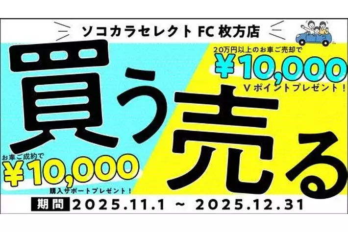 【クルマ買取販売 ソコカラ】ソコカラセレクトFC枚方店にてお得なキャンペーン開始!