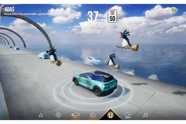 隠し機能として「Faaast Penguin」のペンギンが登場。HOME画面ではペンギンを出現させ、スワイプ操作で動かせます。走行画面ではホウキに乗ったペンギンが一緒に走行します。将来的には、キャラクターを活用したアシスタント機能への発展も見込んでいます。