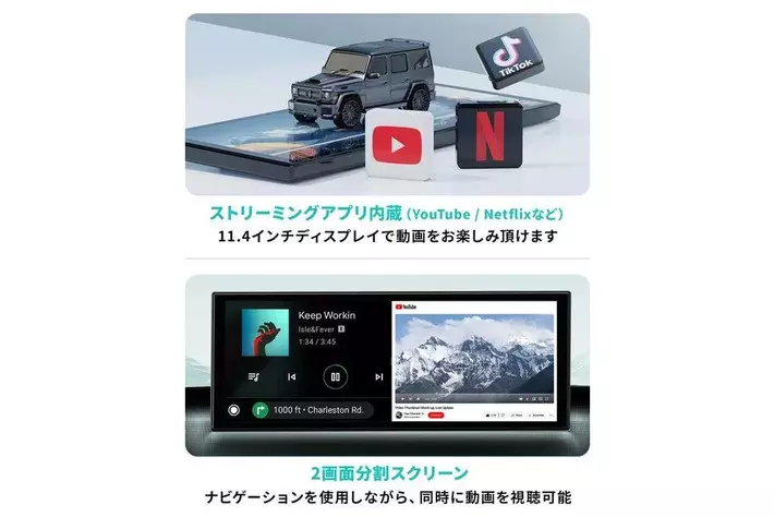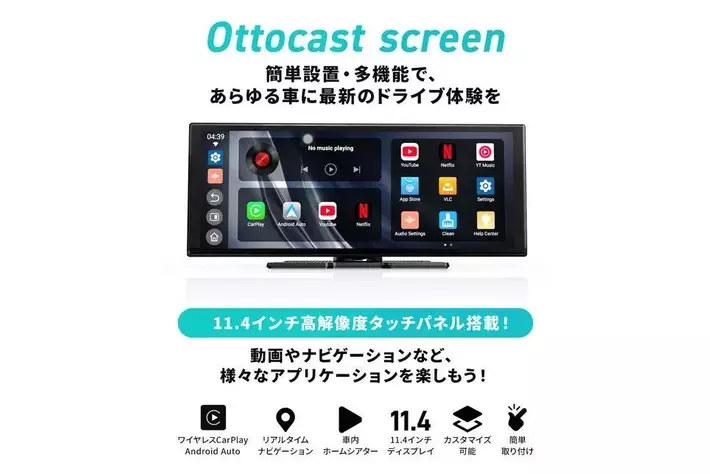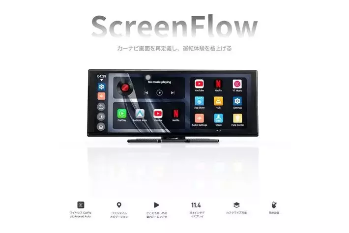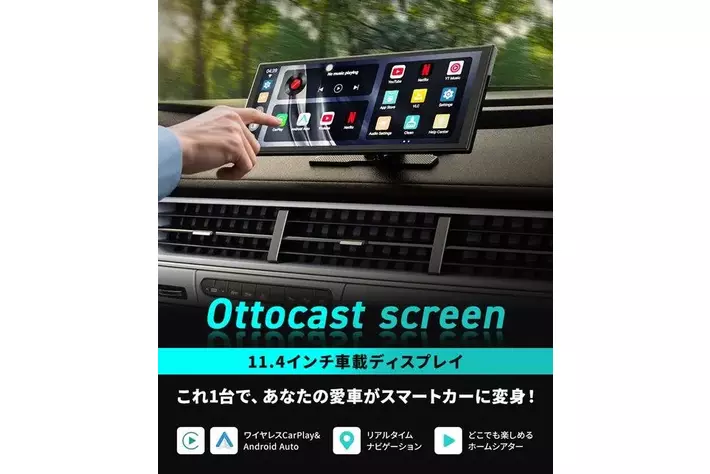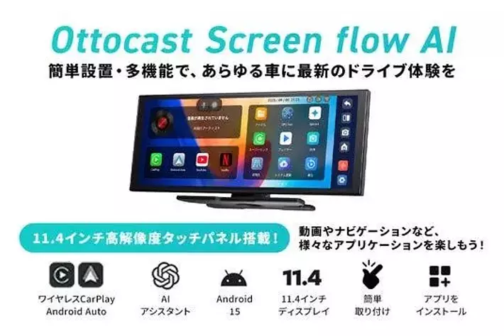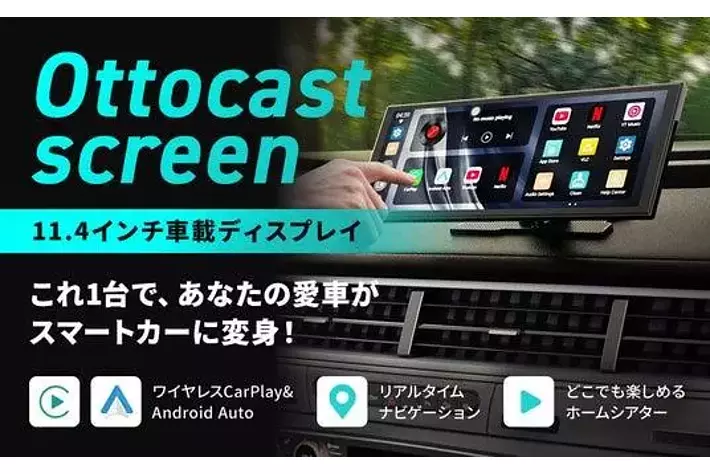 Ottocast ScreenFlow(スクリーンフロー)シリーズは、既存の有線CarPlay車両をワイヤレス化し、11.4インチの大画面で車内エンターテインメントを強化する車載デバイスです。