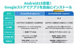 このたび、商人屋ではベーシックモデルの「ScreenFlow」に加え、Android 15搭載・AI音声アシスタントによる操作・Google Playアプリ対応など、充実の機能を搭載した上位モデル「ScreenFlow AI」の取り扱いを開始いたしました。