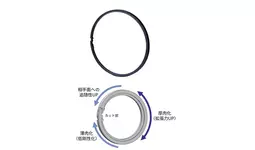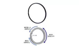 自動車のオートマチックトランスミッション(AT)や無段変速機(CVT)において、油圧を保持するために使用される回転用シールリングの形状設計に関する発明です。オイル漏れを低減するために、非対称(三日月)の形状に設計しています。シールリングの接合部周辺は厚みを薄くして剛性を抑え、反対側は厚みを持たせることで拡張力を高めています。この形状により、シールリング外周面に生じる隙間を低減し、ハウジングとの密着性が向上することで、最大80%のオイル漏れを低減します。高い密封性と耐久性を活かし、油圧の安定性を向上させ、異物の噛み込み防止にも効果を発揮します。