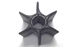 船外機の冷却水をエンジンに循環させるポンプ内に設置され、冷却水の流れをスムーズにする部品「インペラー」の形状設計に関する発明です。インペラーの羽根を回転方向に湾曲させた形状にするとともに、羽根の根元部分のカーブを回転方向側と逆側とで非対称に設計しました。これにより、羽根が滑らかに動きやすくなり、特に破損しやすい根元部分へひずみが集中することを抑制しています。本形状を用いることで、インペラーの耐久性が向上し、ポンプ性能を安定的に維持することが可能になりました。
