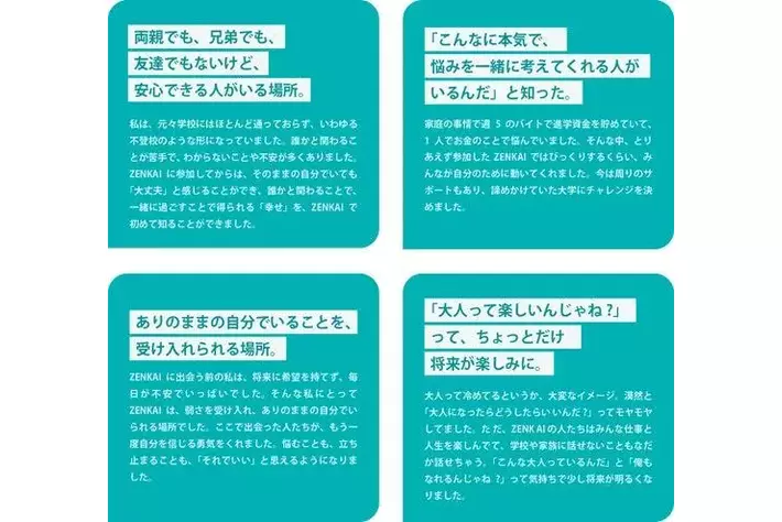 これから先もメンバーが「人生を語り直す」場として、そしてそれを糧に、「自分の可能性を信じて活かすことができる」ように、ZENKAIは仲間との出会いと対話を続けていきます。