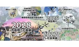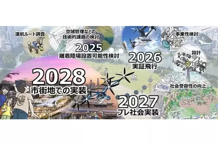本事業では、これらの課題解決を図り、東京都における空飛ぶクルマの早期実装につなげるため、臨海部エリアや河川上エリアにおいて2026 年度中の実証飛行の実施、2027 年度中のプレ社会実装の実施を目指してまいります。