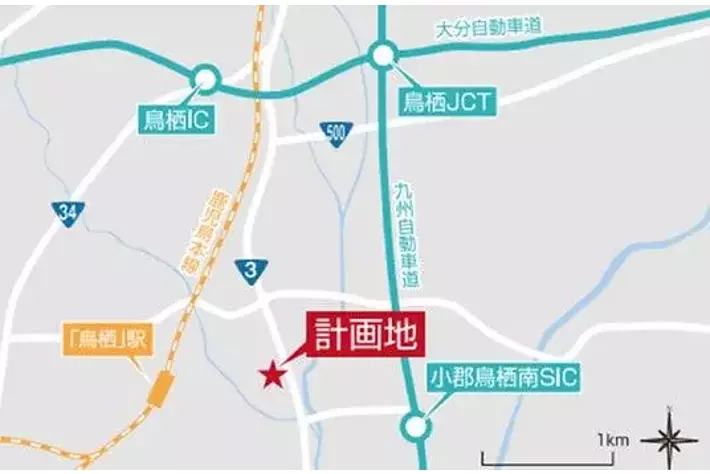 本用地は、九州自動車道「鳥栖インターチェンジ」から約2km、「小郡鳥栖南スマートインターチェンジ」からも約1.5kmに位置し、主要幹線道路である国道 3 号線沿いに面しています。「鳥栖ジャンクション」を経由することで九州全域への輸送が可能で、広域物流拠点としての需要が見込まれる物流施設が集積するエリアです。開発される物流施設は、2027年1月の竣工を予定しています。