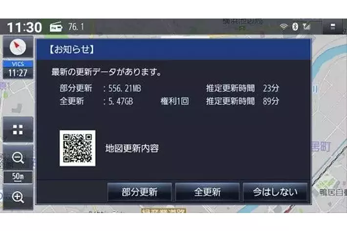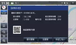 「地図更新」のお知らせが表示されます。「更新」ボタンをタッチすることで、最新版データへの更新が完了します。
