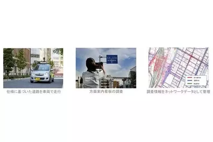 ゼンリンは、国内カーナビゲーション用の地図データでトップシェアを持ち、独自調査から収集・整備した地図データをナビメーカー等に提供しています。全国に約70か所の調査拠点を保有し、建物の入り口情報や方面案内看板、道路規制情報など、カーナビゲーション機能の向上に貢献する詳細な情報を整備・提供しています。