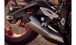 RXには、特別仕様ならではのこだわりが随所に盛り込まれています。精密な機械加工が施されたアッパーヨーク、サイレンサーにレーザー刻印された RXロゴ、そして専用の RXロゴ入りシート など、細部まで特別感のある仕上がりです。外装は印象的な マットアルミニウムシルバー を採用し、大胆な ディアブロレッド のリアサブフレームとホイールを組み合わせることで、サーキット由来のダイナミックで存在感あるスタイリングを実現しています。この特徴的なカラーリングは、初代 Street Triple 675 RXへのオマージュでもあり、そのアイコニックなレガシーを現代的に受け継ぐデザインとなっています。
