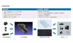 「Morpho Visual Calibrator(TM)」は、AIを利用し、車載カメラで撮影した映像から即座にカメラの位置関係を推定するためのキャリブレーション技術です。オートキャリブレーションを前提とすることで、工場の製造工程におけるカメラキャリブレーション作業を大幅に簡素化でき、設備投資費用が削減できます。また車両開発時におけるカメラキャリブレーションの作業量を大幅に低減でき、次世代自動車においては、カメラやセンサーを数多く搭載するほど、こうした先進技術が必要です。