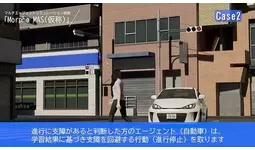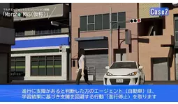 「Morpho MAS(仮称)」にて、歩行者と自動車それぞれが独立したエージェントとして自律的に行動し、衝突を回避