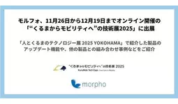 株式会社モルフォ(本社 : 東京都千代田区、代表取締役社長:平賀 督基、東証グロース市場:3653、以下 : モルフォ)は、2025年11月26日(水)から12月19日(金)までオンラインで開催される「“くるまからモビリティへ”の技術展2025」に出展します。