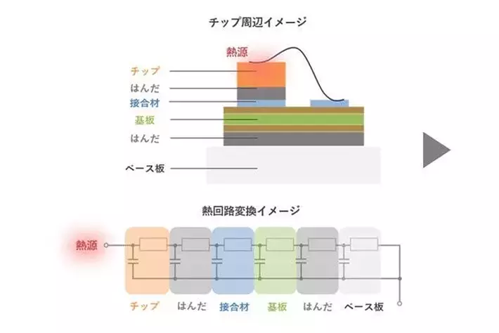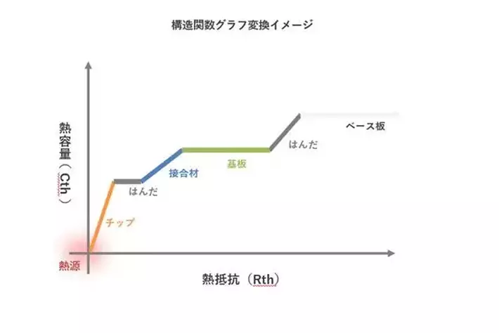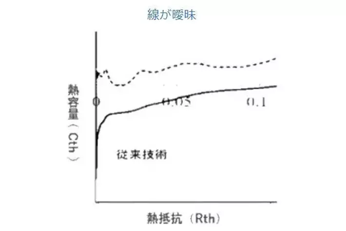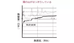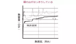 【従来技術】測定した熱抵抗のデータに対して測定ノイズがのる。そのため、構造関数にした際に界面熱抵抗が曖昧になり各部材の傾向が把握しづらい。