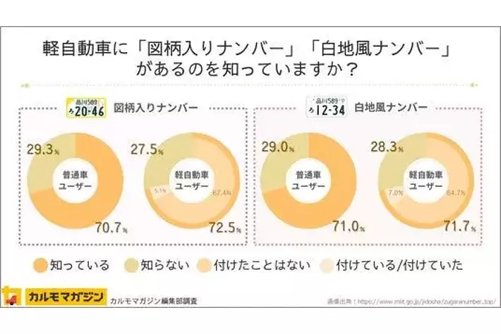 ・白地風ナンバーと図柄入りナンバーの認知度に差はないが、普及率は白地風ナンバーのほうが高い