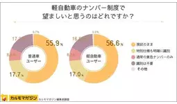 ・軽自動車のナンバー制度は、半数以上が現状維持を望ましく感じている。おもな理由としては、税金を使ってまでわざわざ変える必要性を感じないから。他方で、視認性を理由に、普通車との明確な識別や、図柄入りナンバー自体の廃止を求める声もあり、軽自動車のナンバー制度の在り方に対して個々の感じ方や求める形が一様ではないことが浮き彫りとなった。