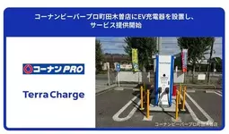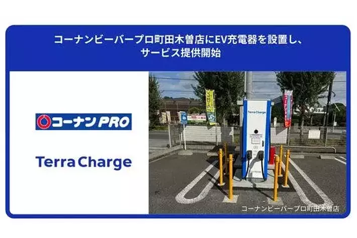 電気自動車(EV)向け充電サービス「Terra Charge(テラチャージ)」を展開するTerra Charge株式会社(本社:東京都港区、代表取締役社長:徳重徹、以下、当社)は、コーナン商事株式会社(本社:大阪府大阪市淀川区、代表取締役社長:疋田直太郎)が運営する「コーナンビーバープロ町田木曽店」(所在地:東京都町田市木曽西3丁目26ー7)へ120kW出力の急速充電器のEV充電器を2口設置し、サービス提供を開始いたしました。