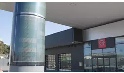 ▲「曲げられる」特長を生かし、県内で初めて丸みのあるキャノピー柱へも設置。