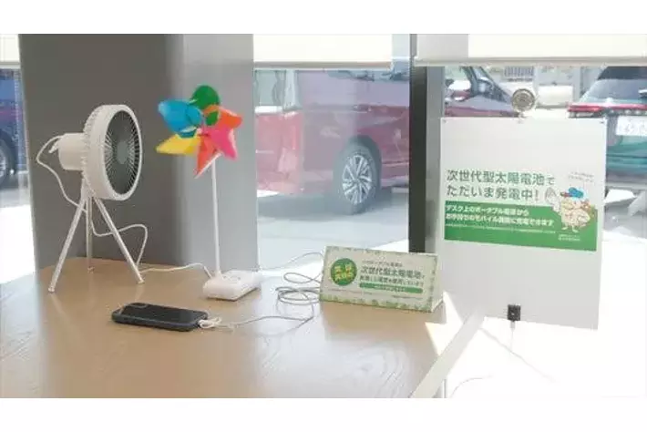 発電した電力は自動販売機やスマートフォン充電等に活用していますので、ぜひ来店されたお客さまには実際に電力を使っていただき、次世代型太陽電池について知っていただければと思います。