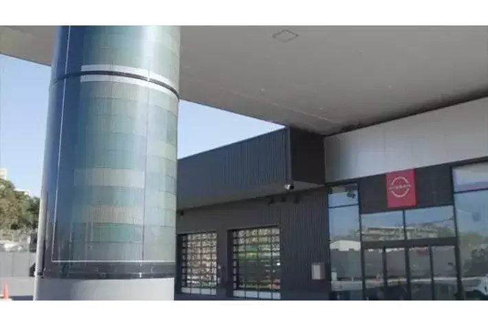 日産自動車株式会社(社長:イヴァン・エスピノーサ、以下「日産自動車」)は、神奈川県が実施する「次世代型太陽電池普及促進事業」(※1)の採択を受けて進めていた事業について、日産神奈川販売株式会社のR1東戸塚店(横浜市戸塚区)に自動車販売店として国内初となる次世代型の「カルコパイライト太陽電池」の実証実験を10月16日(木)より開始しました。株式会社PXP(神奈川県相模原市)が開発・提供する「薄く、軽く、曲げられる」という特性をもつ「カルコパイライト太陽電池」を店舗ガラス面やキャノピー(※2)の円柱部分などに設置し、「見える再生可能エネルギー(再エネ)店舗」として来店者が発電電力を体感できる環境を整えています。
