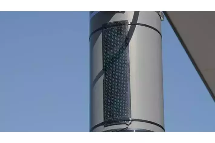 神奈川県は環境負担が低く、建物や商業施設といった既存の都市構造物への設置も可能な次世代型太陽電池の早期普及を目指し、実証実験の支援を進めています。今回の取り組みでは、県内企業である相模原市の株式会社PXPが開発した「カルコパイライト太陽電池」を活用。厚さ約0.6mm、重量0.7kg/平方メートル と軽量で、曲面にも追従できる柔軟性を持つため、従来のシリコン系では難しかった壁面や円柱などへの設置が可能です。