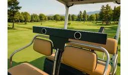取り付け後もゴルフカートの外観、重量を大きく変えることなく、かなり安全で、かつ快適にご走行いただけます。電源には走行用の既存バッテリーやガソリンとは別に、専用のリン酸鉄リチウムバッテリーを搭載するため、夏場に1日中【OASIS プラス】を使用したとしても走行用のバッテリーに支障はありません。暑い日もクーラーの冷風で体をクールダウンさせながら無理なくコースを回ることができます。