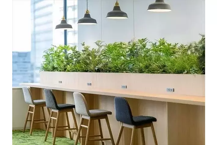 みなとみらいの街並みを一望できるカウンターエリアを設置し、開放感あふれる雰囲気の中でアイデアを共有できる空間を実現しました。業務内容やシーンに応じて柔軟に活用できるスペースを設け、集中作業や打ち合わせ、休憩など、目的に合わせて最適な働き方ができる環境を整えています。