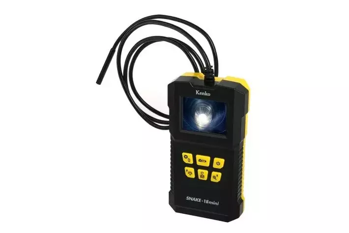 Kenko SNAKE-18miniは手の届かない狭い所や高い所でも簡単に動画・静止画で撮影することができるフレキシブルチューブカメラです。防塵・防水仕様なので水回りでの撮影が可能です。また、フレキシブルチューブ先端にLEDライトが付いているため、暗い所でも使用できます。