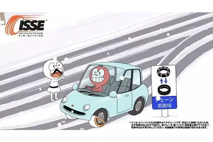 さらに、2023年からイッセ・スノーソックスのキャラクターとして愛される、赤イッセ・白イッセのCMも公開。いつも一緒の仲良し2人がドライブ中に突然降ってきた雪、、、車を止めてイッセ・スノーソックスを取り付けます。ジャッキアップも工具も不要なイッセ・スノーソックスは、急な雪にもサッと装着でき、軽くても、頼もしさ十分な冬の味方です。