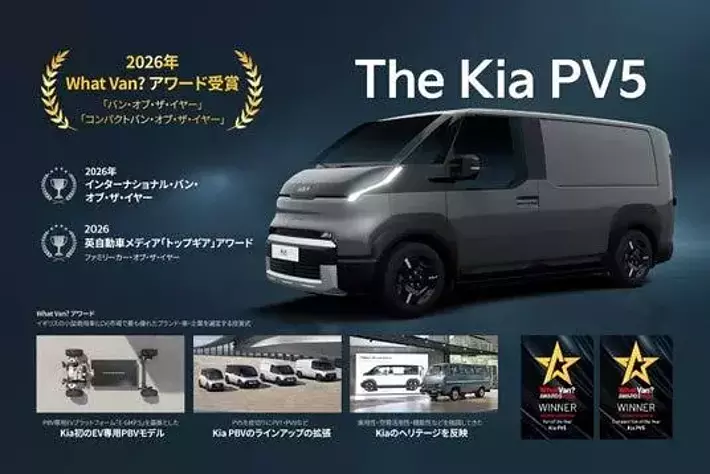 Kia PBVジャパン株式会社(本社:東京都千代田区、代表取締役社⾧:田島靖也、以下、Kia PBVジャパン)が来春日本国内で発売するThe Kia PV5(以下、「PV5」と呼称)が、海外の商用車アワードを次々と受賞する快挙を成し遂げました。