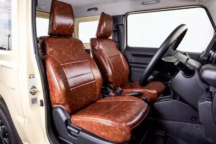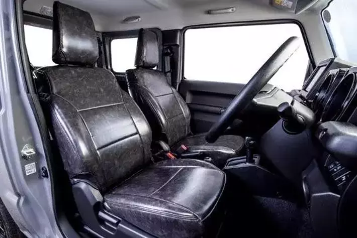上質なPUレザーを採用したシートカバーは、ジムニー純正インテリアとの調和も抜群。