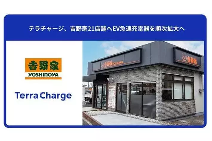 電気自動車(EV)向け充電サービス「Terra Charge(テラチャージ)」を展開するTerra Charge 株式会社(本社:東京都港区、代表取締役社長:徳重徹、以下、当社)は、株式会社吉野家(本社:東京都中央区、代表取締役社長:成瀬 哲也、以下、吉野家)が運営する全国にあるうちの21店舗へ、急速充電器を順次拡大してまいります。