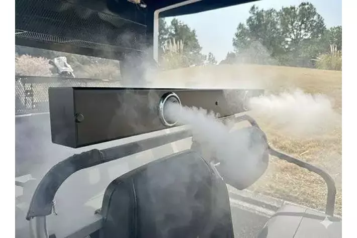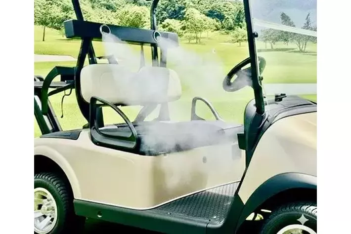 5人乗りのカートの運転席と助手席に吹き付ける冷風。同時に後部座席にも冷風が吹き付けられます。写真はイメージです。