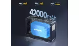 さらに42000mAhの大容量を備え、mAhあたりの価格は0.6円未満と非常にコストパフォーマンスに優れています。満充電状態で12V車両を60回以上、24V車両を30回以上始動可能です。