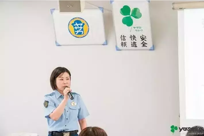 彌榮自動車は労働集約型産業の構図ではあるものの、従業員定着率が比較的高く、近年の順調な採用推移を鑑み「定期的にこの種の講習会を実施したい」という意向を府警本部とすり合わせてきました。そして本年度の実施について協議を行い、9月27日が「女性ドライバーの日」、10月11日から10月20日が「全国地域安全運動」の期間中で、本年の重点目標項目として「SNS型投資詐欺・ロマンス詐欺の被害防止」「女性の犯罪被害防止」が組み込まれたことから、この時期の実施となりました。