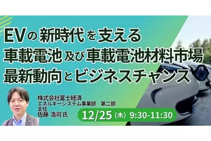 JPI(日本計画研究所)は、株式会社富士経済 エネルギーシステム事業部 第二部 主任 佐藤 浩司 氏を招聘し、EVの新時代を支える車載電池及び車載電池材料市場の最新動向とビジネスチャンスについて詳説いただくセミナーを開催します。
