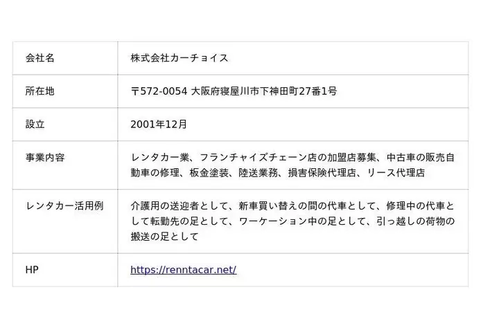格安レンタカーサービス「業務レンタカー」を運営する株式会社カーチョイス(本社:大阪府寝屋川市、代表取締役:田川 英紀)は、2025年12月15日(月)に新店舗「業務レンタカー 名古屋鳴海店」をオープンしたことをご報告いたします。業務レンタカーとしては愛知県で4店舗目となります。2021年にフランチャイズ経営を始めてから約4年、業務レンタカーは全国59店舗に。今後も、より一層皆さまに信頼されるサービスづくりに努めてまいります。